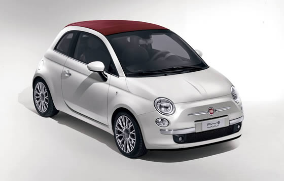 Fiat have announced that their 500 Cabriolet will be available to the U.S. market “just in time for spring”. Like the European model it has fixed window frames and a retracting fabric roof just like the original Nuova Cinquecento from the 1950s. Unlike the classic Fiat 500 the roof can be opened electrically at speeds up to 60 mph.