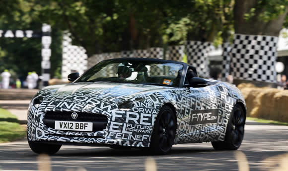 The Jaguar F-Type Roadster prototype made its public debut at the Goodwood Festival of Speed over the weekend. The still camouflaged convertible sports car was driven up the famous hill-climb event with Jaguar’s Head of Vehicle Integrity, Mike Cross at the wheel. The F-Type followed a procession of classic Jaguar C-type, D-type and E-type models giving the spectators a display of the evolution of the brand’s sporting heritage.