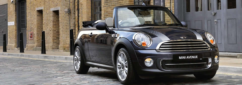 Alternatively if you are spoilt for choice and can’t make up your mind Mini have created the a special edition package of options called Avenue. The pack comes with with either ‘Highclass Grey’ or ‘Laguna Green’ metallic paint. Both feature an identical interior with an exclusive ‘Soda’ repeating design motif. The MINI Avenue package’s standard spec includes Satellite Grey Soda Lounge leather with matching black floor mats, Bi-colour Sport leather steering wheel with multi-function controls, Soda mirror caps and special effect white bonnet stripes. The vehicle runs on 17-inch twin-blade spoke alloy wheels.