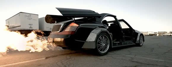 Star of a video which has been viewed worldwide and with over 37 million YouTube hits the limo customisation may not have been as costly as it first seems. The ‘thundersome cruiser’ thought to have been formerly owned by one of the rappers has all four doors and roof panels removed exposing the raw frame. A crude sheet-metal body kit widens the wheel arches to allow for larger wheels while an over-sized fire-spitting exhaust pipe extends form the rear. The new owner will not be able to drive the Maybach in public as it is no longer road-legal.