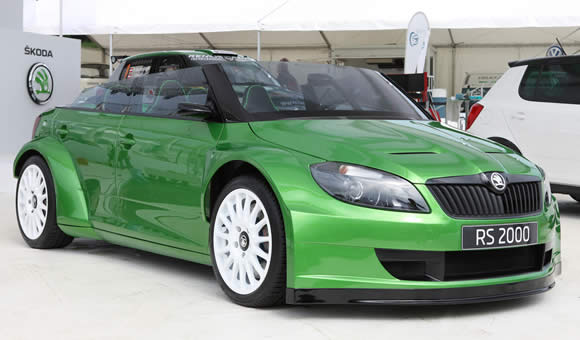 The Skoda Fabia RS 2000 is quite a different beast. It may share the same chassis and engine as the Golf but this one has four doors, a wide-body kit with flared wheel arches over white powder-coated alloys. The convertible Fabia is a cross between a four seat convertible and a race-bred rally car. Inside are four individual bucket seats with full racing harnesses.